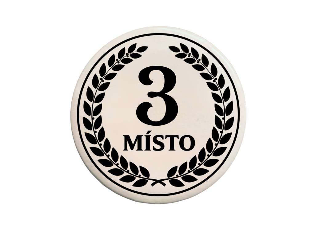 Buttonkový střed s označením umístění je praktickým a estetickým řešením pro každou soutěž, kde je důležité jasně a přehledně ocenit výsledky.